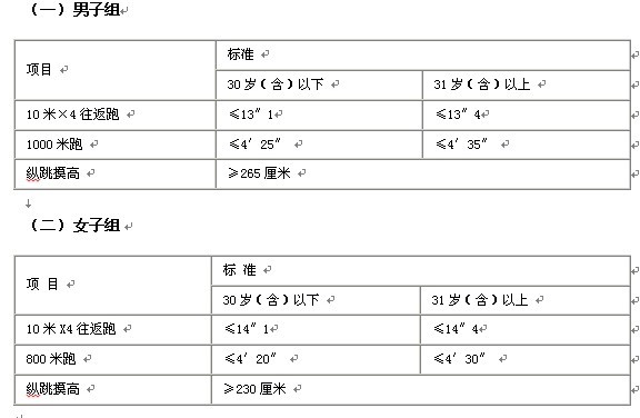2013年陜西省錄用警察體能測(cè)評(píng)項(xiàng)目和標(biāo)準(zhǔn)
