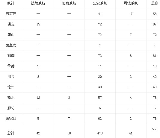 2013年河北政法干警報(bào)名人數(shù)統(tǒng)計(jì)如下: