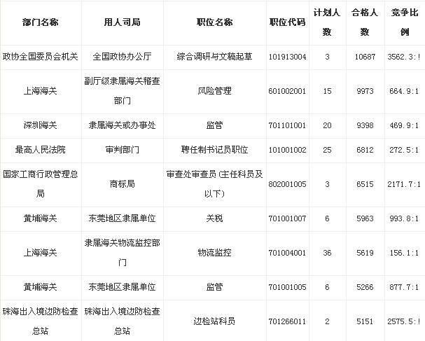 2013年國(guó)家公務(wù)員考試報(bào)名最熱門(mén)前10職位