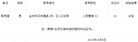 2013年浙江金華市級(jí)機(jī)關(guān)公務(wù)員考察對(duì)象(第五批)