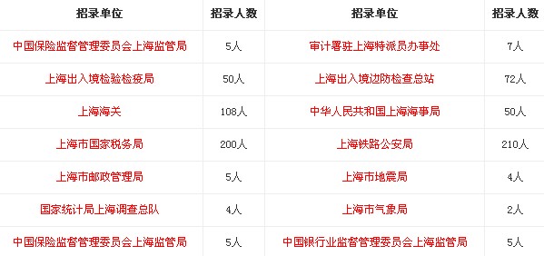 2014年國家公務(wù)員考試上海職位表公布如下: