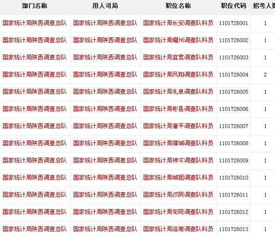 2014年國家公務(wù)員考試國統(tǒng)局陜西調(diào)查總隊職位表公布如下: