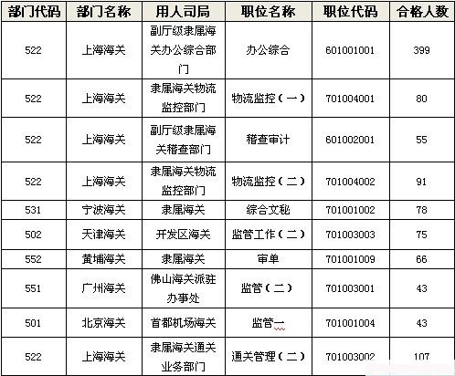 2014國(guó)家公務(wù)員考試海關(guān)報(bào)名前十部門