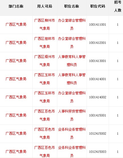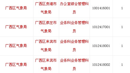 2014年國家公務(wù)員考試職位表:廣西氣象局