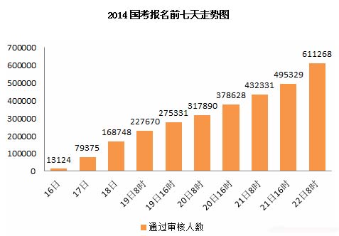 2014國考報名22日8時,審核通過人數(shù)突破60萬人大關(guān),1天激增18萬