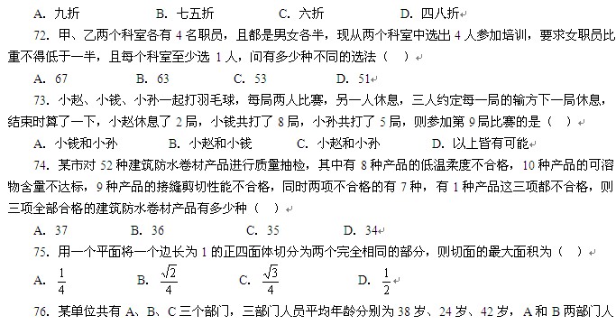 2011年國家公務(wù)員考試行測真題:數(shù)量關(guān)系