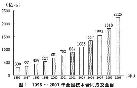 全國2007年認(rèn)定登記的技術(shù)合同共計(jì)220868項(xiàng),同比增長7%,總成交金額2226億元,同比增長22.44%;平均每項(xiàng)技術(shù)合同成交金額突破百萬元大關(guān),達(dá)到100.78萬元。