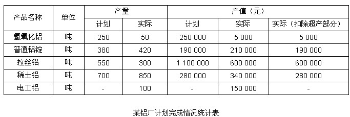 4.稀土鋁的實際產(chǎn)值比計劃產(chǎn)值增加了多少?( )