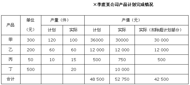 下列是×季度某公司產(chǎn)品計(jì)劃完成情況的統(tǒng)計(jì)表,請(qǐng)回答表后1~5題。