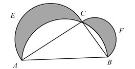 68. 如圖,在以AB為直徑的半圓上取一點(diǎn)C,分別以AC和BC為直徑在△ABC外作半圓AEC和BFC。當(dāng)C點(diǎn)在什么位置時(shí),圖中兩個(gè)彎月形(陰影部分)AEC和BFC的面積和最大?( )