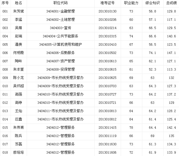 資格審查人選按考生報考的崗位招考計劃數(shù),依筆試總成績從高分到低分等額確定(筆試總成績相同的,按《職業(yè)能力測試》科目成績高低順序排序),具體資格復(fù)審人員名單見附件。