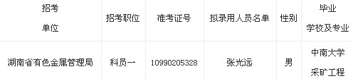 2013年湖南省有色金屬管理局考錄公務(wù)員名單公示