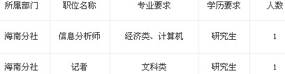 一、報名者應(yīng)政治堅定,品德優(yōu)良,無參加非法組織或活動等不良記錄;大學(xué)本科以上學(xué)歷;具有大學(xué)英語六級證書或在新計分體制中六級筆試成績在425分以上,民族地區(qū)分社招收少數(shù)民族畢業(yè)生,英語條件可適當(dāng)放寬;西藏分社招收的應(yīng)屆高校畢業(yè)生在藏工作時間滿5年,如表現(xiàn)合格,可到內(nèi)地分社工作。