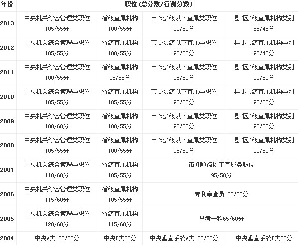 2004-2013年國家公務(wù)員考試分?jǐn)?shù)線匯總