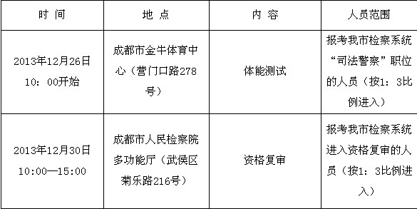 2013年四川省成都市檢察系統(tǒng)公務員體測及資格復審公告