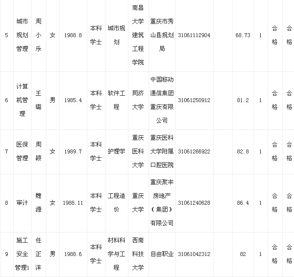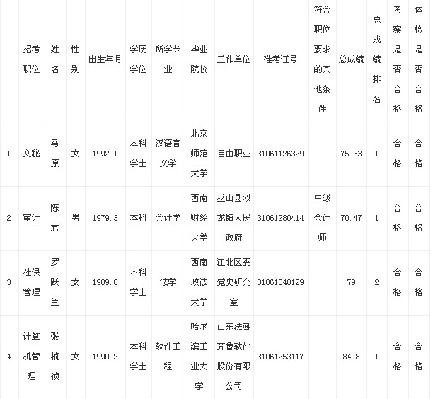 按照中共重慶市委組織部、重慶市人力資源和社會保障局、重慶市公務員局《2013年下半年面向社會公開考試錄用公務員》的公告要求,現(xiàn)將擬錄用參照公務員法管理人員予以公示。