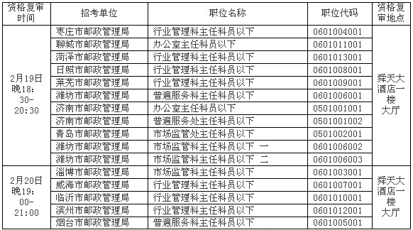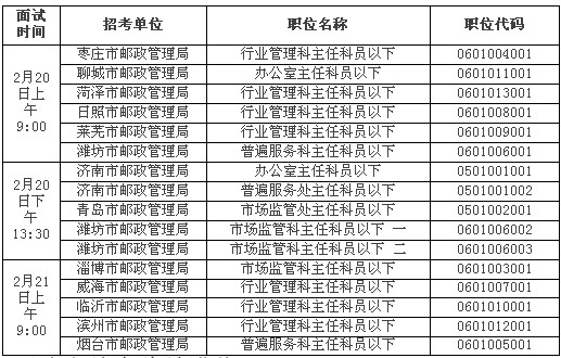 3. 請考生仔細(xì)閱讀面試時間安排,面試當(dāng)天憑身份證和已同時加蓋“面試資格已確認(rèn)”戳記及“山東省郵政管理局人事處”公章的準(zhǔn)考證報到。