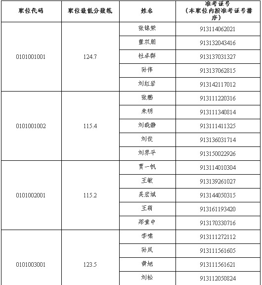 一、面試人員名單(本職位內(nèi)按準(zhǔn)考證號(hào)排序)