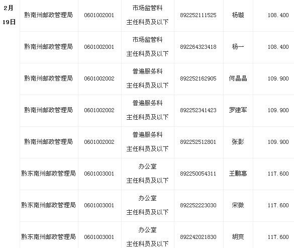 貴州省郵政管理局面試人員名單