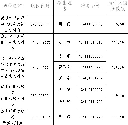 因部分考生放棄面試資格,根據(jù)公務(wù)員考錄有關(guān)規(guī)定,擬在公共科目筆試合格的考生中,按照筆試成績從高到低的順序,遞補(bǔ)以下考生為面試人選: