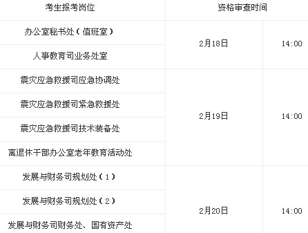 請參加面試的考生,根據(jù)報考崗位按照以下時間安排,到中國地震局機關(guān)西樓326會議室進行資格審查。