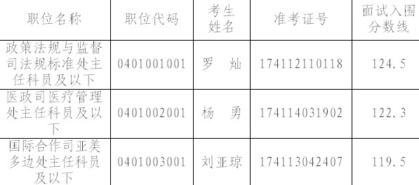 因個別考生放棄面試資格,根據(jù)公務(wù)員招考有關(guān)規(guī)定,擬在公共科目筆試合格的考生中,按照筆試成績從高到低的順序,遞補(bǔ)以下考生為面試人選: