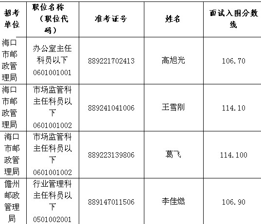 海南省郵政管理局2014年公務(wù)員遞補面試公告