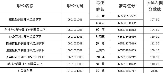 因部分考生放棄面試資格,根據(jù)公務(wù)員招考有關(guān)規(guī)定,擬在公共科目筆試合格的考生中,按照筆試成績(jī)從高到低的順序,遞補(bǔ)以下考生為面試人選: