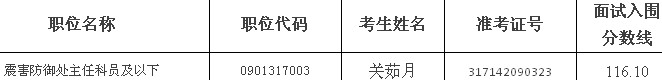 因報考0901317003崗位的楊菲菲(準考證號:317132022501)考生自愿放棄面試資格,根據(jù)公務員招考有關規(guī)定,按照筆試成績從高到低的順序,遞補關茹月參加面試,具體情況如下: