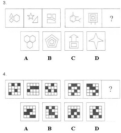 4.D【解析】本題屬于位置類,主要考察了圖形位置關(guān)系中的平移問題,第一組圖形中,第一列,第三列黑塊每次向上移動一格,觸頂后返到底部。第二列,第四行黑塊每次向下移動一格。第二組圖形中,第一列圖形每次向上移動一格,觸頂后返到底部,第二列,第三列,第四列每次都向下移動一格。所以選擇D選項。