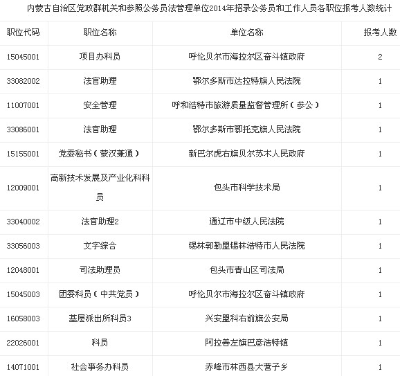 截止到3月12日,2014年內(nèi)蒙古公務員考試報名人數(shù)統(tǒng)計如下: