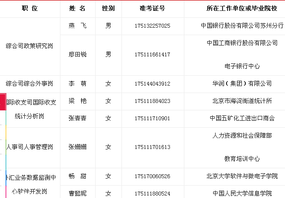 2014年國家外匯管理局擬錄用公務員公示