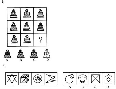 3.B【解析】此題比較簡單,圖形遍歷規(guī)律,直接觀察所缺元素即可。