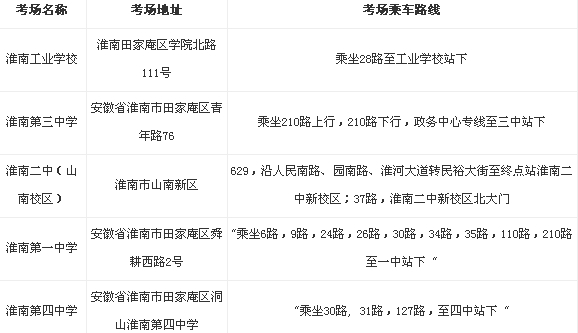 2014年安徽省公務(wù)員考試淮南考區(qū)考點