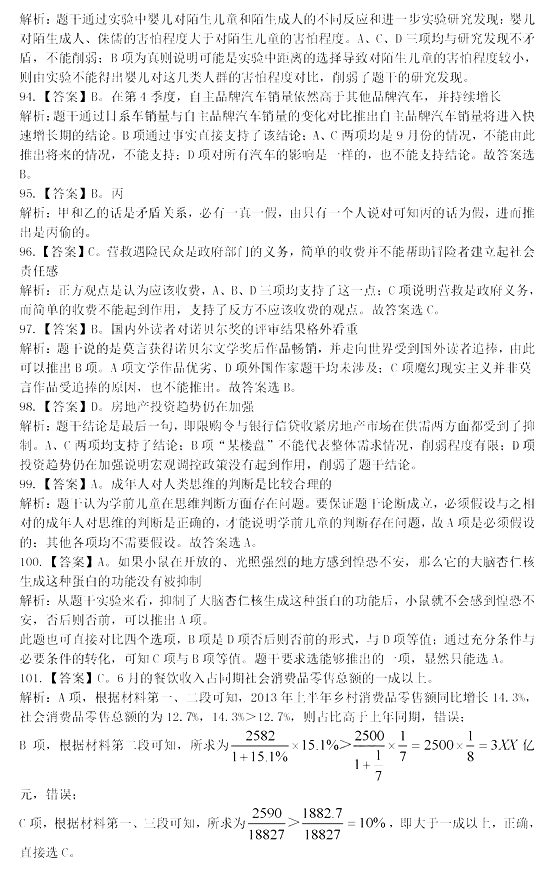 2014年黑龍江省公務員考試行測答案:判斷推理