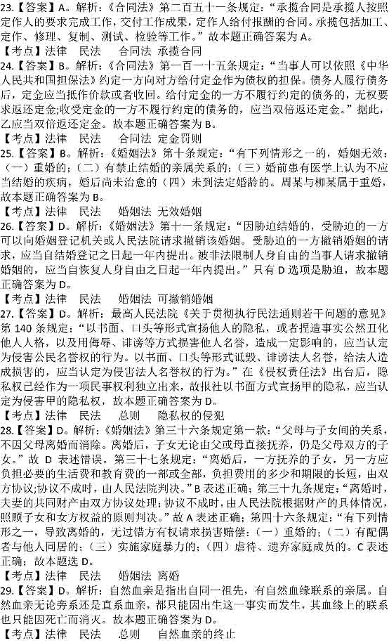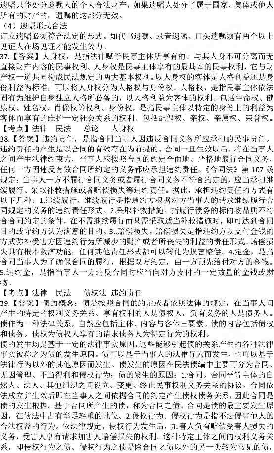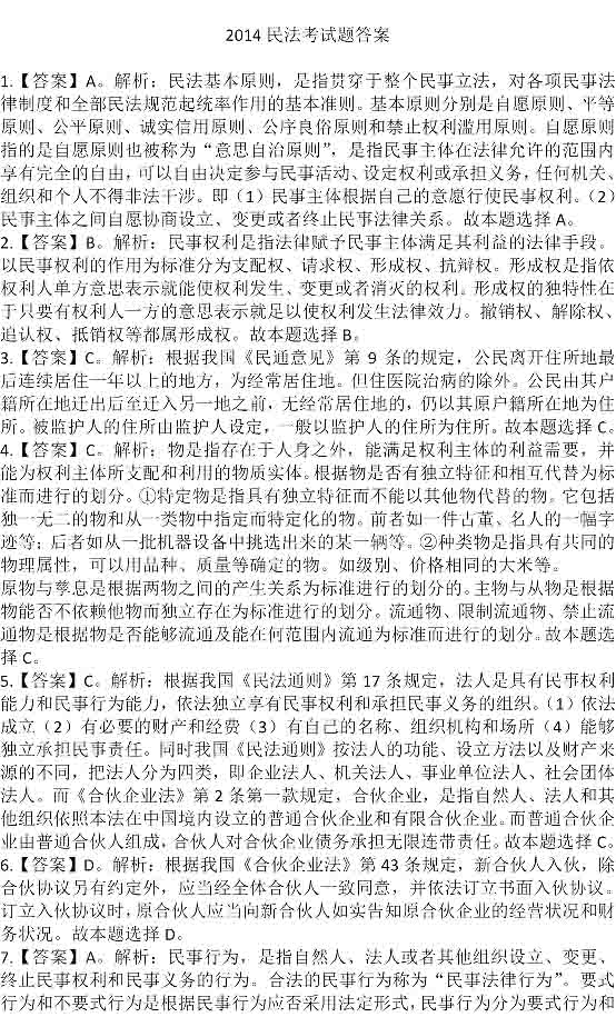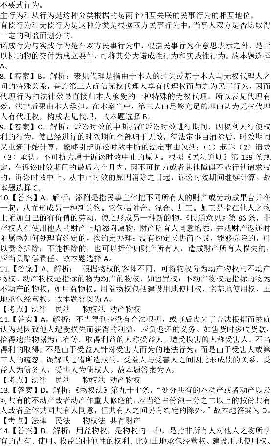 2014年政法干警考試答案:民法學
