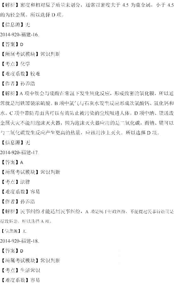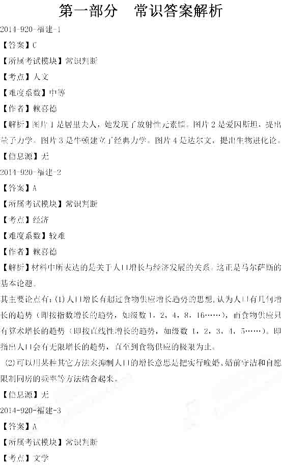 2014年秋季福建公務(wù)員考試行測真題答案:常識判斷