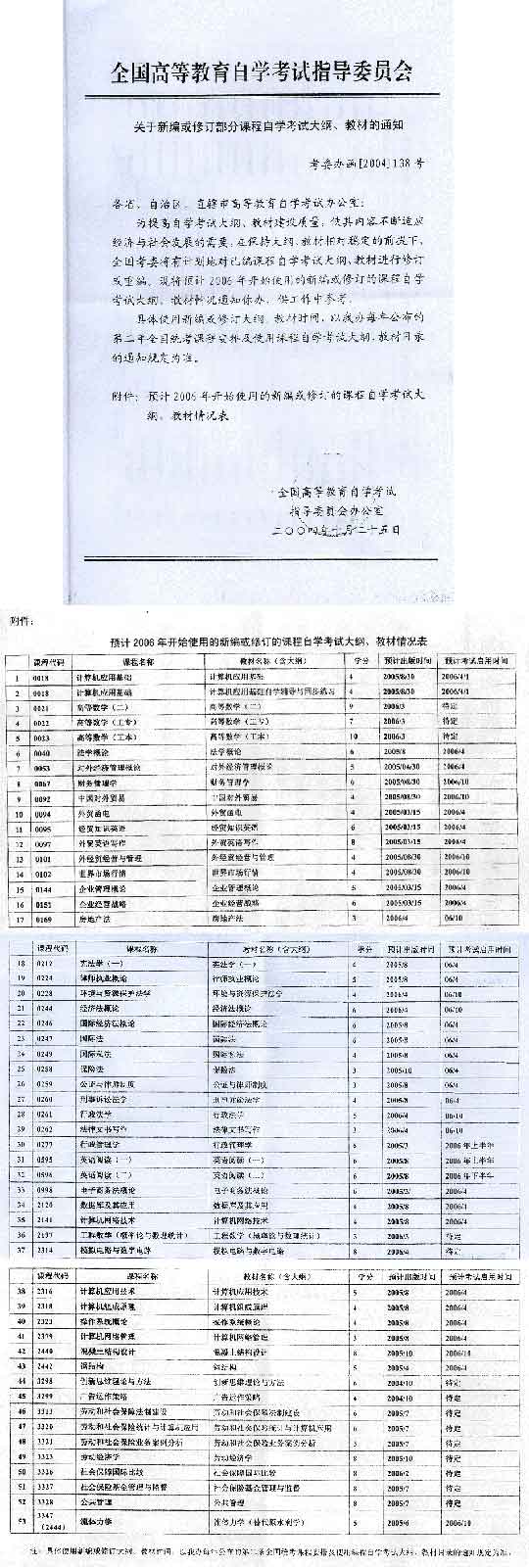 關(guān)于新編或修訂部分課程自考大綱、教材通知