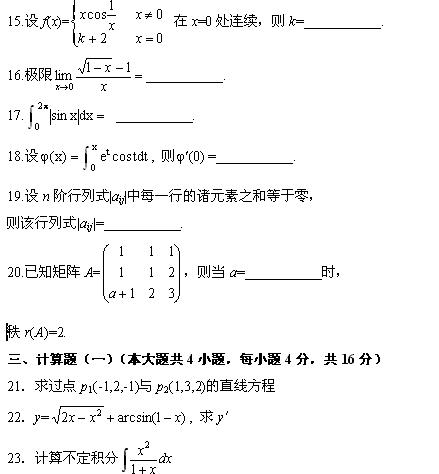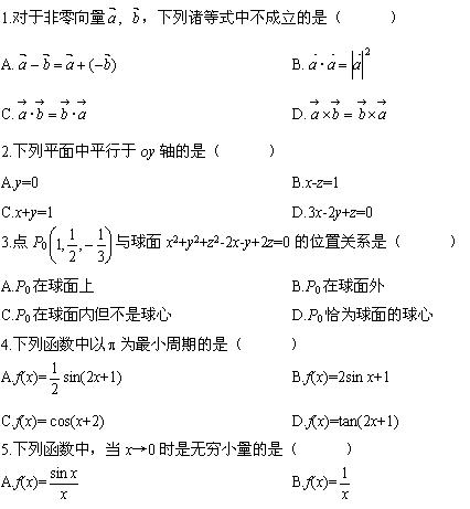 2008年4月高等教育自學(xué)考試高等數(shù)學(xué)基礎(chǔ)試題