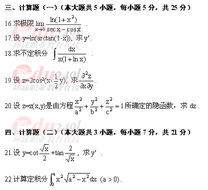 全國2008年7月高教自考高等數(shù)學(xué)(一)試題