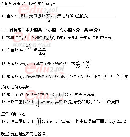 全國(guó)2008年4月高教自考高等數(shù)學(xué)(工本)試題