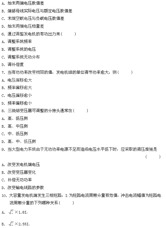 全國2010年10月自學(xué)考試電力系統(tǒng)基礎(chǔ)試題