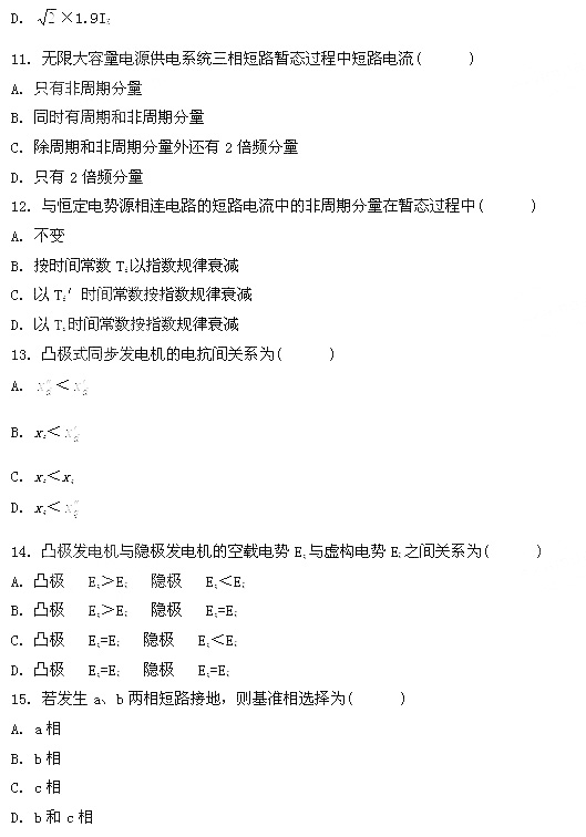 33.凸極式同步發(fā)電機,出口發(fā)生三相短路,暫態(tài)過程中定子、轉(zhuǎn)子各出現(xiàn)哪些電流分量?