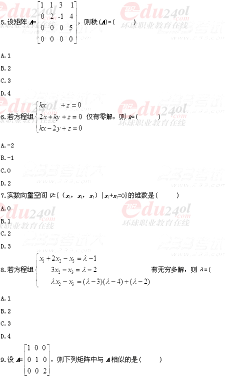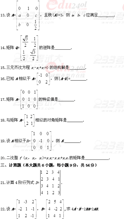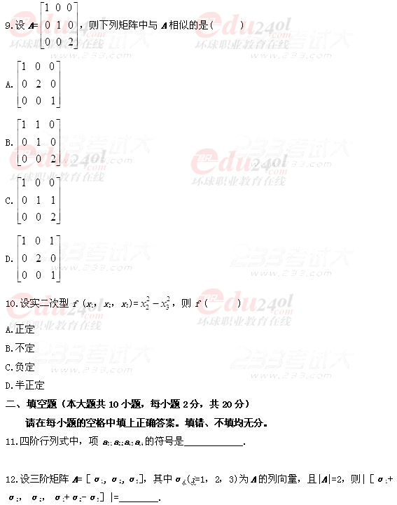 全國2011年7月自學(xué)考試線性代數(shù)試題