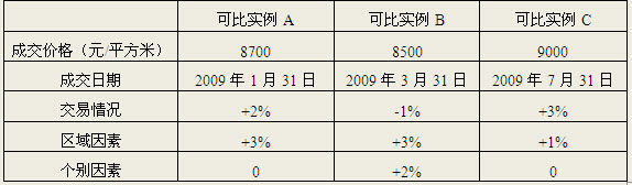 2.為評(píng)估某商鋪的價(jià)格,在該商鋪附近地區(qū)調(diào)查選取了A、B、C三宗類似商鋪的交易實(shí)例作為可比實(shí)例,有關(guān)資料如下表: