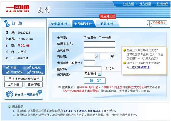 3、以下畫面為考生在易寶支付中選擇招商銀行之后,進入招商銀行網(wǎng)上銀行的畫面。