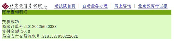5、以下為考生通過易寶支付繳費成功后,返回到系統(tǒng)的畫面