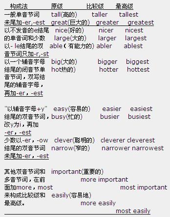 單音節(jié)詞和少數(shù)雙音節(jié)詞,加詞尾-er,-est來(lái)構(gòu)成比較級(jí)和最高級(jí)。