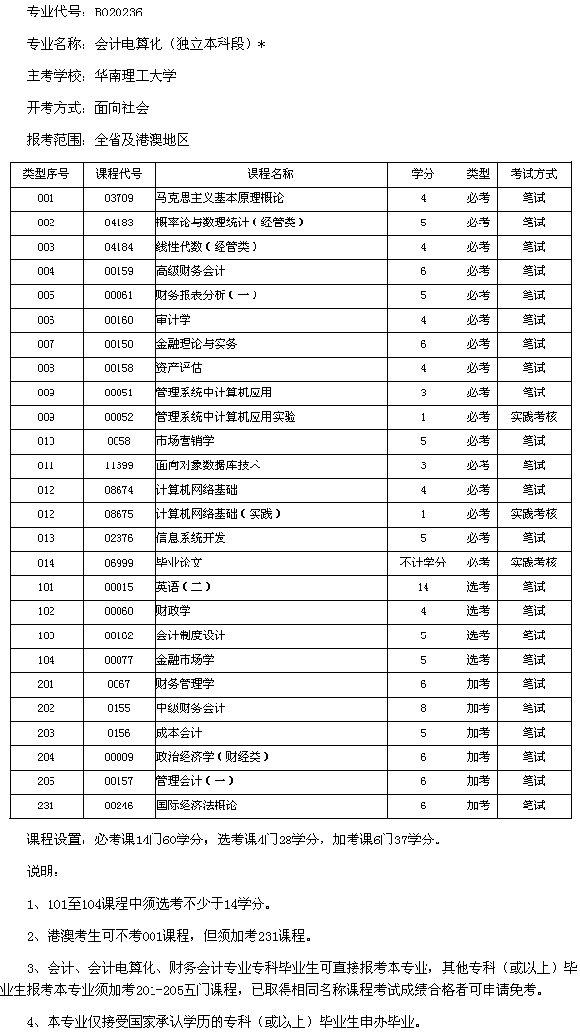 摘要 廣東2013年華南理工大學會計電算化(本科)考試計劃
