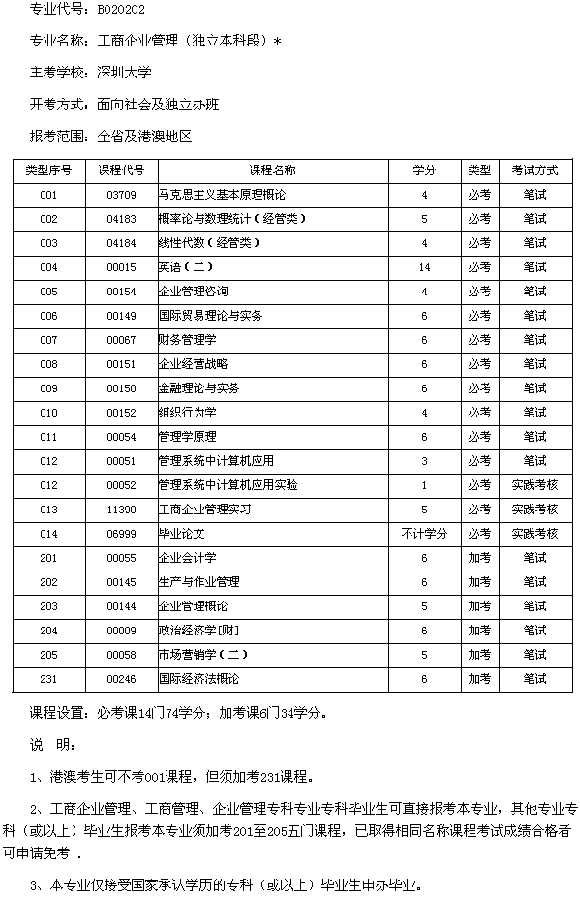 廣東2013年深圳大學(xué)工商企業(yè)管理(本科)考試計(jì)劃
